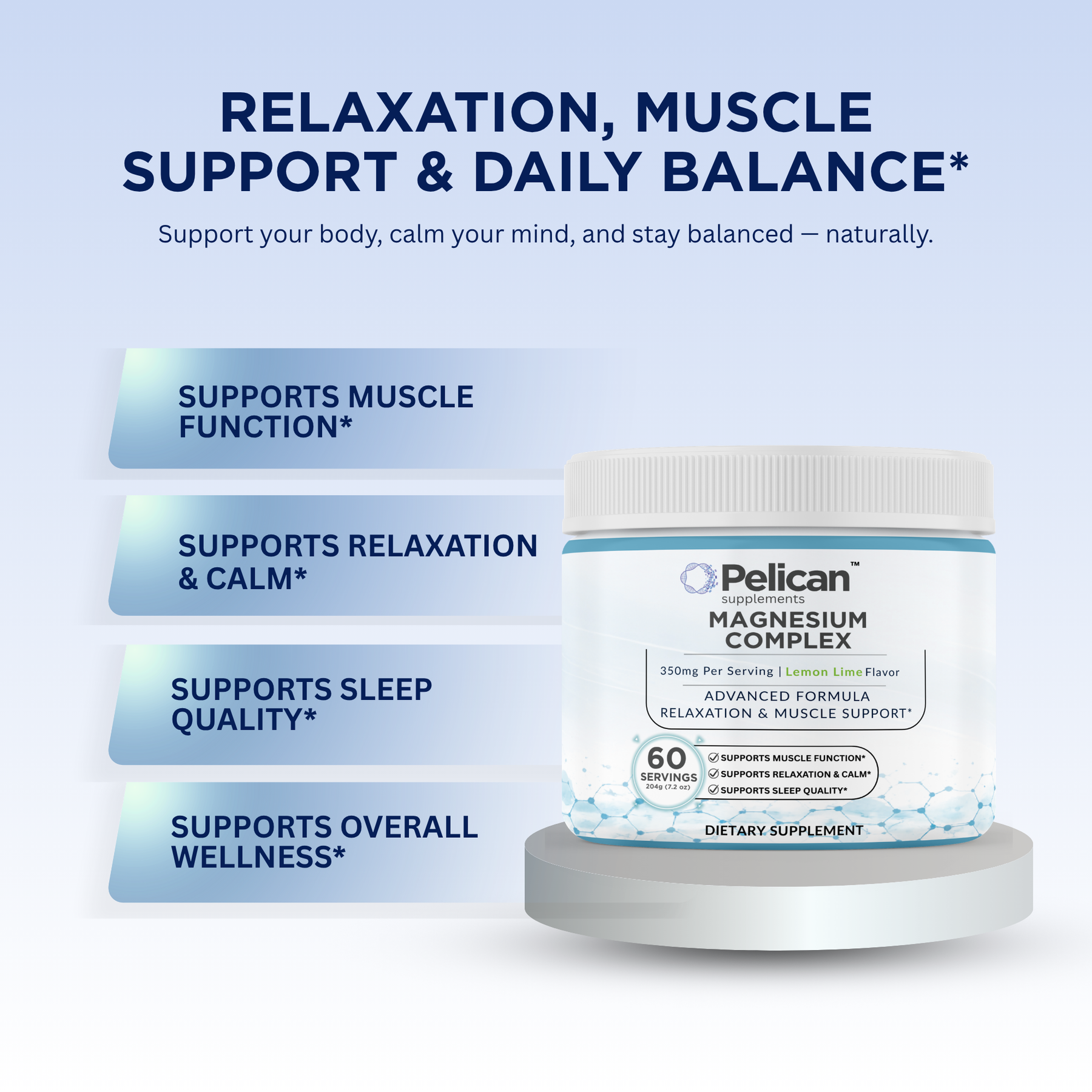 Magnesium Complex is formulated with highly absorbable magnesium to support muscle function, relaxation, and restful sleep. This advanced formula is designed to help promote calm, support recovery, and maintain overall wellness.
