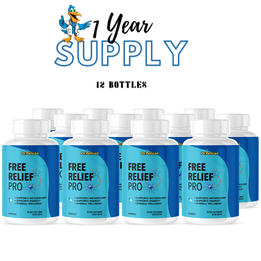 Free Relief Pro- Nerve & Brain Support- 12 Bottles- 720 Capsules